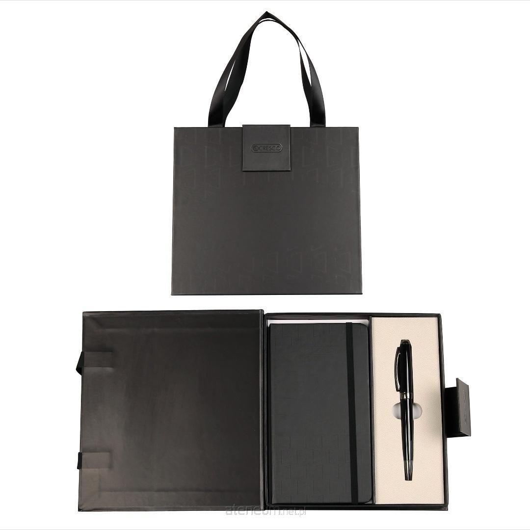 Zestaw prezentowy w ciekawym opakowaniu imitującym torebkę prezentową. Komplet zawiera notes z gumką i wstążką oraz elegancki czarny długopis SYMPHONY. Zestaw upominkowy spakowany w kartonowe etui z zapięciem magnetycznym. Po zamknięciu opakowanie przybiera postać torebki prezentowej z uchwytami ze wstążki. Zatem po zakupie jest to gotowy prezent do wręczenia na różne okazje.