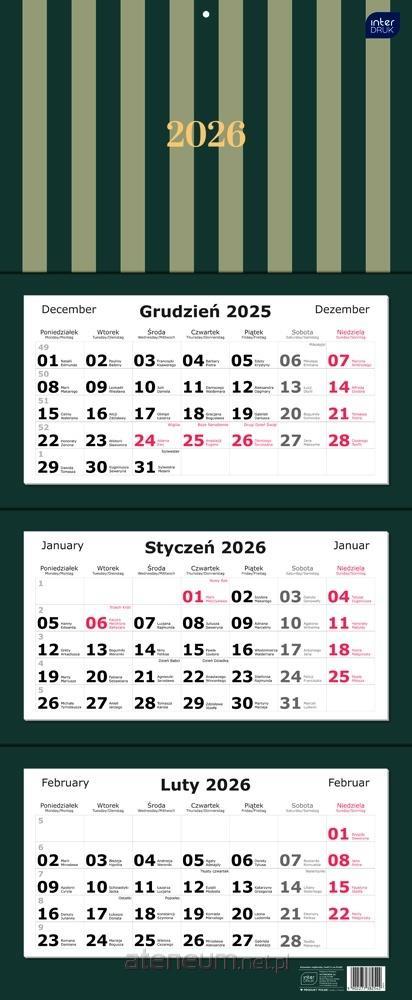 Kalendarz 2026 trójdzielny 82,5x34cm Paski