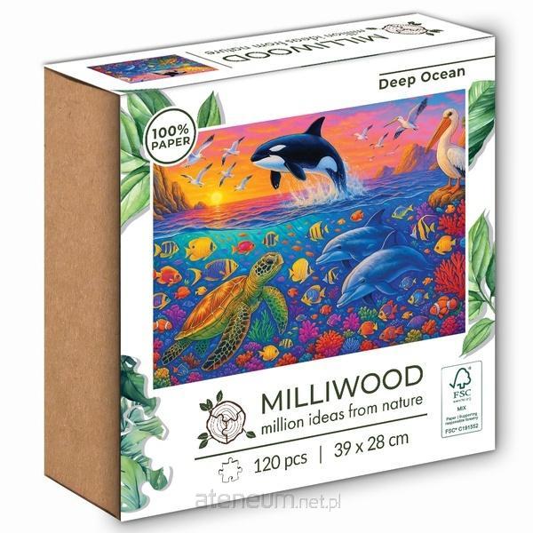 Puzzle Deep Ocean to fascynująca podróż do podwodnego świata pełnego życia, barw i niesamowitych stworzeń. Na ilustracji spotkasz żółwia morskiego, delfiny, orkę, kolorowe ryby rafowe i majestatycznego pelikana wszystko uchwycone w magicznym, bajkowym stylu.