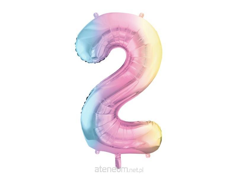 Balon foliowy Cyfra ''2'' w kolorze pastelowym tęczowym , rozmiar przed napompowaniem ok. 100 cm (39''), rozmiar po napompowaniu ok. 86 cm (34''). Do napompowania powietrzem i helem. Zestaw zawiera słomkę.