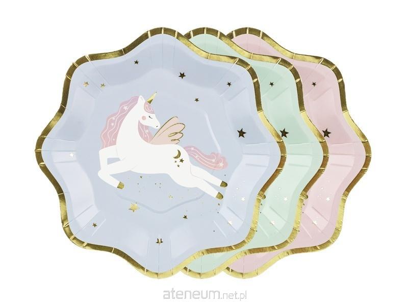 Talerzyki papierowe Jednorożec, mix kolorów, wymiary ok. 18 x 18 cm(1 op. / 6 szt.)
