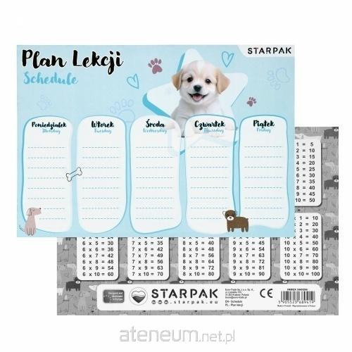 Plan lekcji jest niezbędnym elementem wyposażenia szkolnej wyprawki. Plan z kolekcji STARPAK Cuties Pieski2 zawiera podział na pięć dni tygodnia z 8 wierszami do wpisu, dzięki czemu żaden uczeń nie zapomni o potrzebnych mu danego dnia książkach czy zeszytach, dodatkowo na odwrotnej stronie posiada tabliczkę mnożenia. Przyjazna grafika sprawi, że każdy dzień w szkole będzie dobrze zaplanowany i udany. Zapoznaj się również z innymi produktami Starpak! Plan lekcji wykonany z papieru. Wyprodukowany w Polsce. Pakowany w folię po 25 sztuk. Wymiary produktu(szer. x wys.) [cm]: 23x16. Waga produktu w opakowaniu [kg]: 0,23 kg.