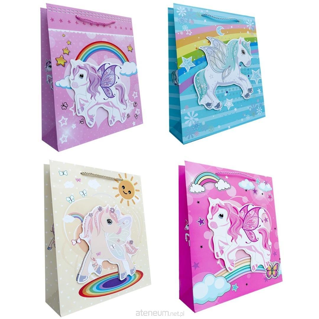 Torebka papierowa dziecięca wykonana z grubszego papieru o gramaturze 210 g, co zapewnia jej większą trwałość i odporność na obciążenie. Wyposażona w grubszy, kolorowy sznurek, który zapewnia wygodny uchwyt i estetyczne wykończenie. To praktyczne opakowanie, które podkreśla wartość wręczanego prezentu.