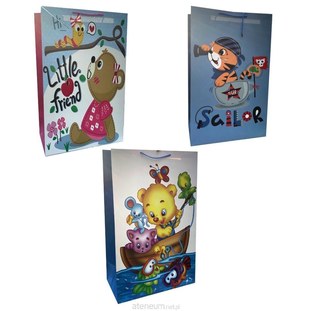 Torebka papierowa dziecięca wykonana z grubszego papieru o gramaturze 210 g, co zapewnia jej większą trwałość i odporność na obciążenie. Wyposażona w grubszy, kolorowy sznurek, który zapewnia wygodny uchwyt i estetyczne wykończenie. To praktyczne opakowanie, które podkreśla wartość wręczanego prezentu.