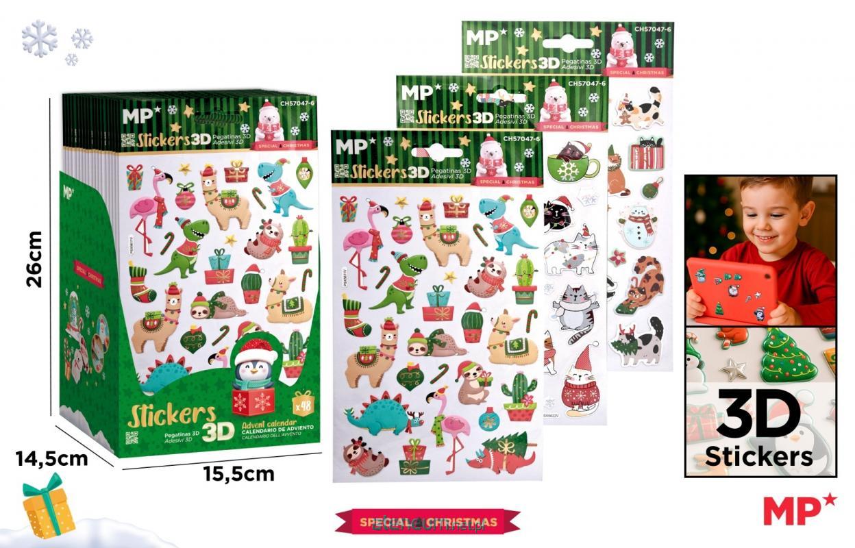 Naklejki wykonane z PVC, przyjaznego dla środowiska materiału zgodnego z normami Unii Europejskiej, z efektem wypukłości. Drukowane w jasnych kolorach z wyraźnymi motywami. Można je przyklejać do papieru, kart i PP oraz łatwo usuwać z powierzchni pokrytych tworzywem sztucznym. Każde opakowanie zawiera od 2 do 3 wzorów na arkusz