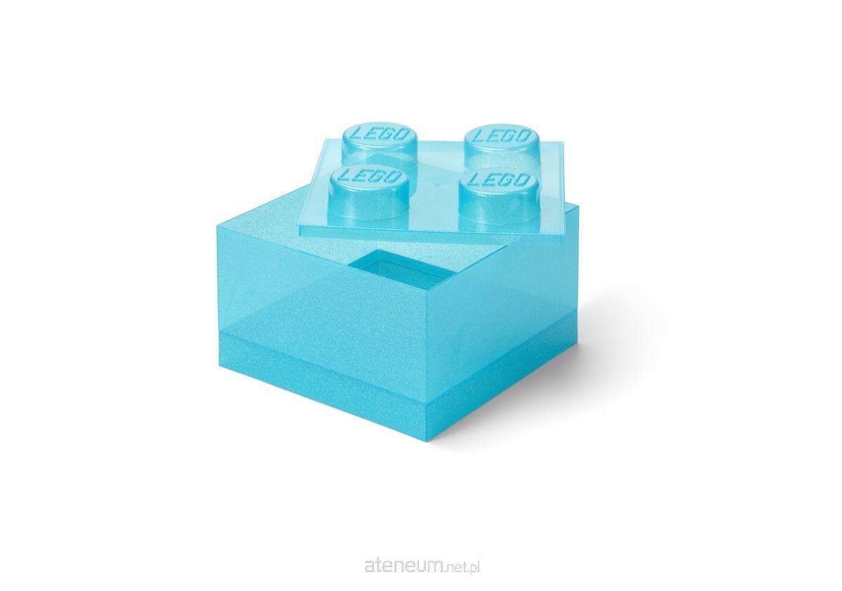 Pojemnik w kształcie klocka LEGO® "czwórka" transparentny błękitny z brokatem o pojemności 5,6 ml. Kompatybilny z pozostałymi klockami w serii.