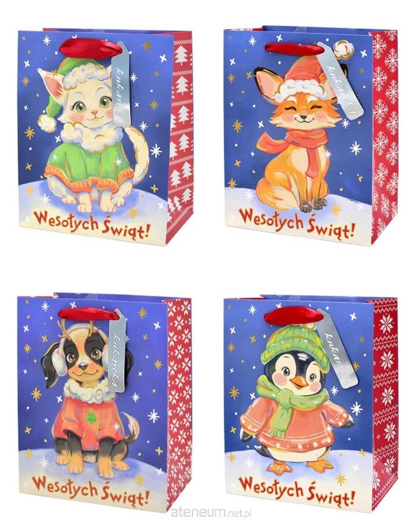 Zestaw toreb na Boże Narodzenie QM-353, pakowane po 12 sztuk (4 wzory) w zestawie.