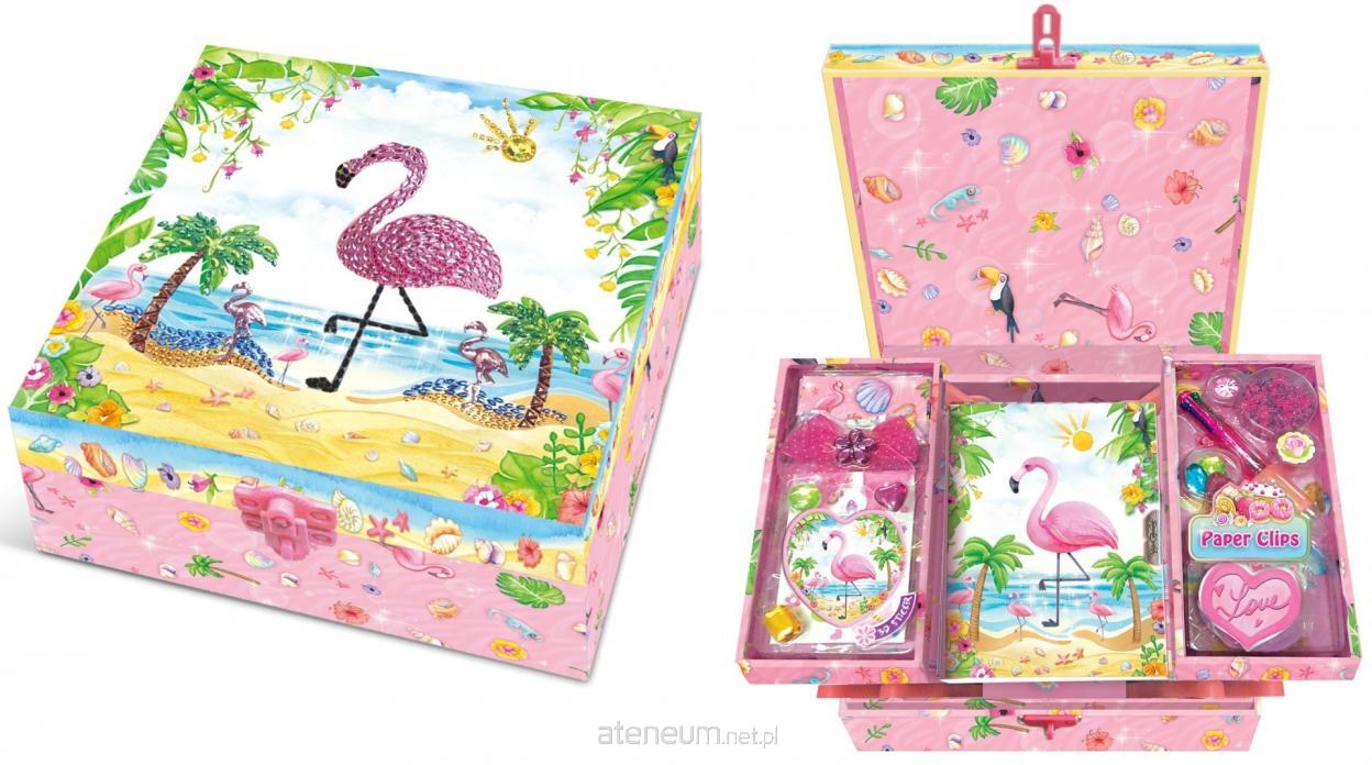 Notatnik w szkatułce z akcesoriami flaming