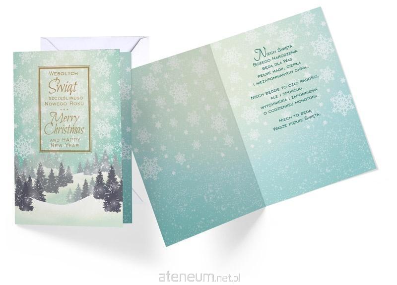 Kartka wielkości B6, zdobiona w zależności od wzoru metaliczną folią lub brokatem. Każda kartka posiada kolorowe życzenia w środku i koperte.