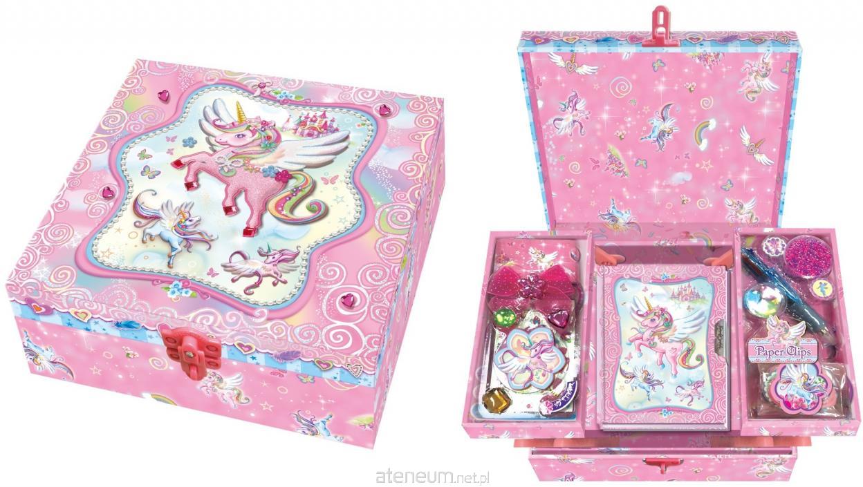 Zestaw zapakowany w ozdobne pudełko z 2 półeczkami, które można rozłożyć na boki, a pod nimi schować pamiętnik.Wiek: 6+