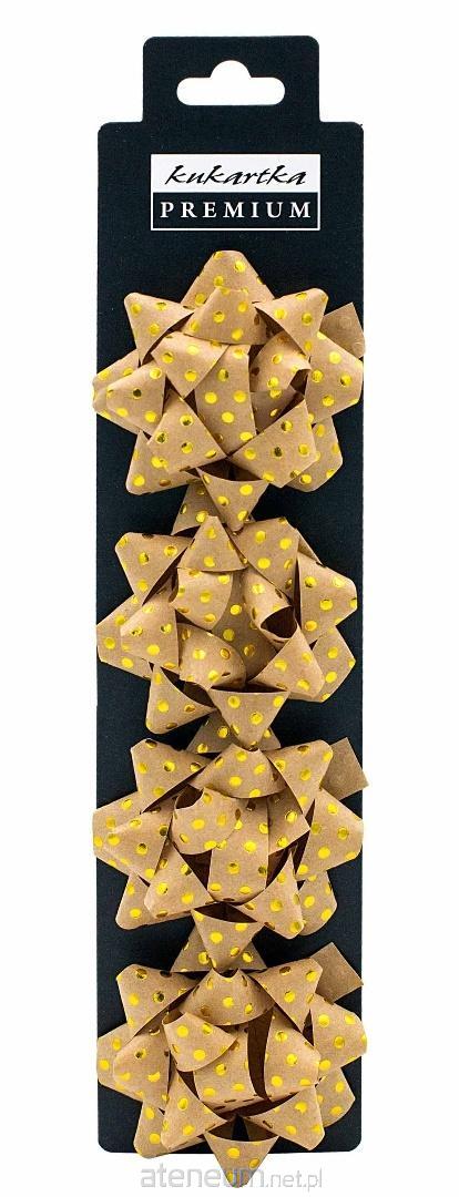Kokardy wykonane z papieru kraft uszlachetnione dodatkowo metalizowanymi foliami.