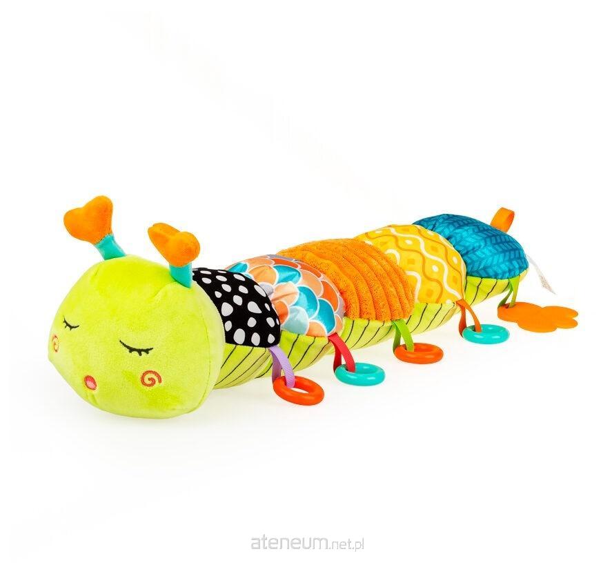 Kolorowa gąsieniczka grzechocze wesoło, zachęcając maluchy do wspólnej zabawy! Poszczególne segmenty jej ciałka uszyte zostały z materiałów o różnych fakturach, w tym takiego, który szeleści, a wszystko po to, aby stymulować zmysły dziecka, wpływając korzystnie na rozwój jego zdolności poznawczych. Zabawka wyposażona została w gryzaczek, kolorowe kółeczka oraz grzechotkę, ukrytą w ostatnim segmencie. Na brzuszku gąsienicy znajduje się miarka w centymetrach i calach, którą można wykorzystać do wesołych zdjęć dziecka z zabawką, a gdy maluch podrośnie - do nauki liczenia.