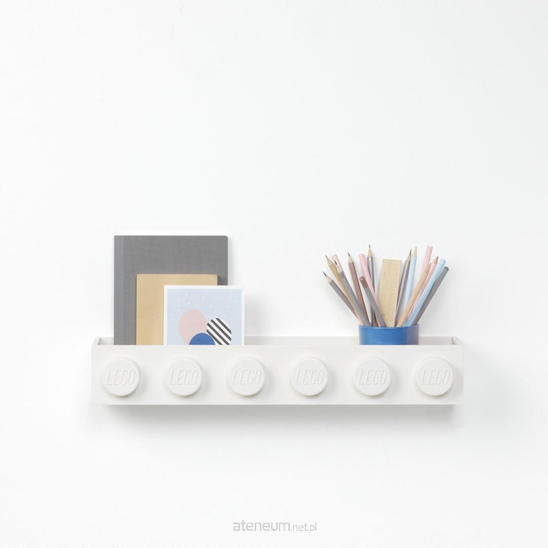 Półka na ścianę LEGO®, podłużna w kolorze białym.
