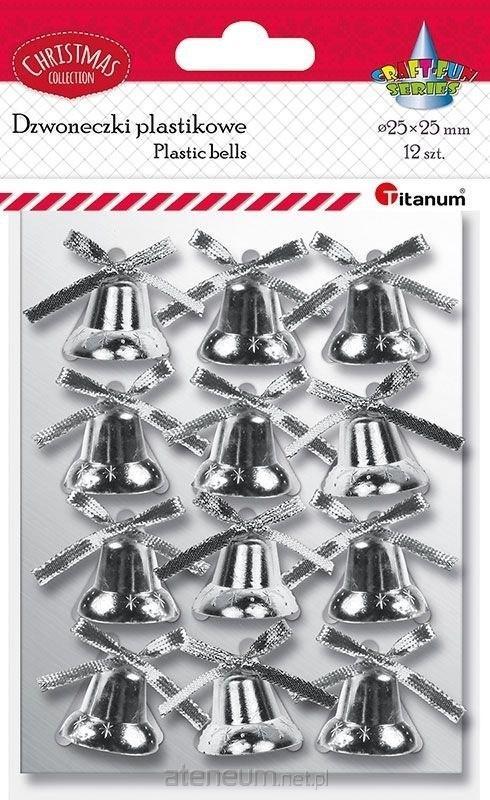 Dzwoneczki plastikowe O25mm wysokość 26mm z doklejoną rypsową kokardą i mocowaniem twist złote 12szt.
