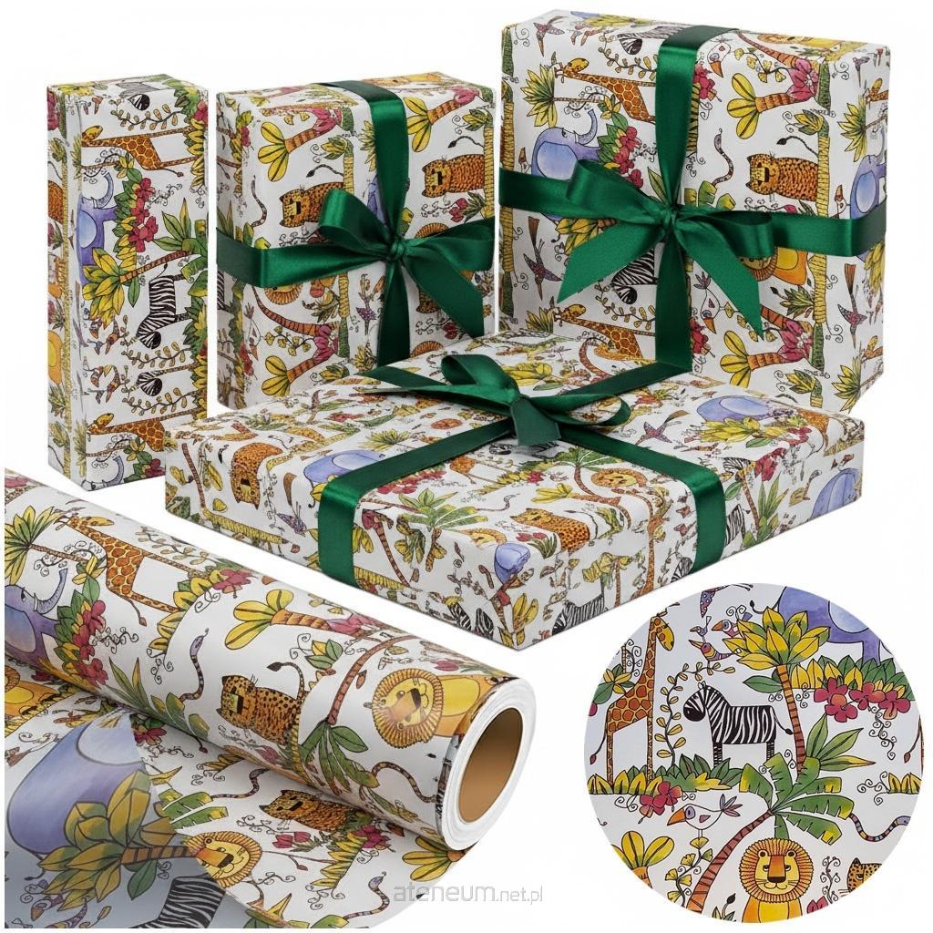 Papier ozdobny WESOŁE SAFARI zachwyca bajkowym wzorem, w którym królują egzotyczne zwierzęta i soczyste barwy natury. To idealny wybór do pakowania prezentów dziecięcych, dekoracji pokoju, projektów DIY czy scrapbookingu. Z papierem WESOŁE SAFARI każdy prezent zamieni się w kolorową opowieść pełną ciepła, uśmiechu i pozytywnej energii.