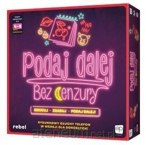 Podaj dalej! Bez cenzury to wyjątkowa gra skojarzeniowa, która dorosła i nabrała naprawdę specyficznego poczucia humoru. Podczas zabawy wszyscy jednocześnie rysujemy wylosowane hasła, a następnie staramy się odgadnąć, co narysowali przeciwnicy. Zanim dotrzemy do ostatniej strony szkicownika, czeka nas mnóstwo dziwnych skojarzeń, zabawnych pomyłek i niedopowiedzeń, zwłaszcza że większość haseł na pierwszy rzut oka kojarzy się tylko z jednym