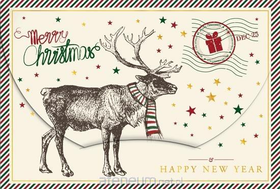 Karnet świąteczny poziomy, składany na kształt koperty w formacie B6, złocony z kopertą ochronną w zestawie.