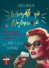 Karnet 3K to bogato zdobiony karnet z elementem naklejanym oraz złoceniem. Karnet to doskonały dodatek do prezentu. Karnet zawiera również zabawne życzenia.