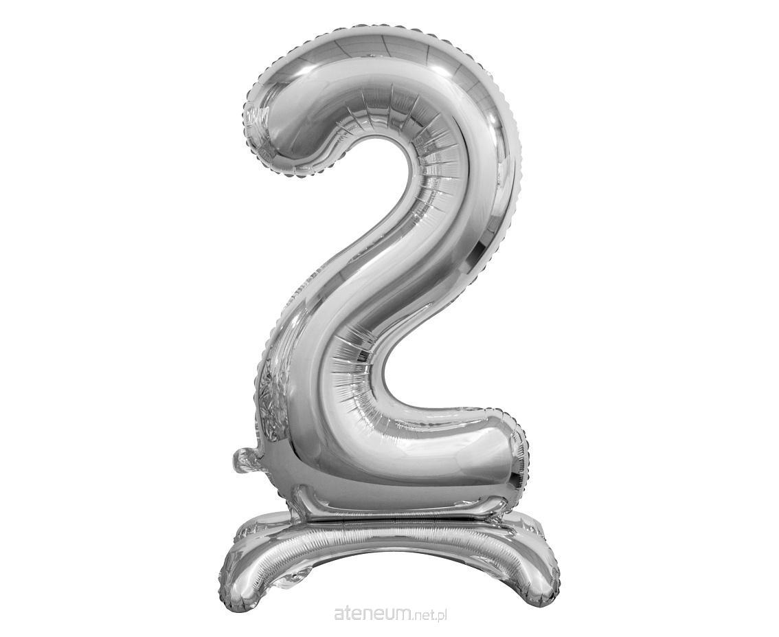 BALON FOLIOWY STOJĄCY CYFRA 2, SREBRNA
