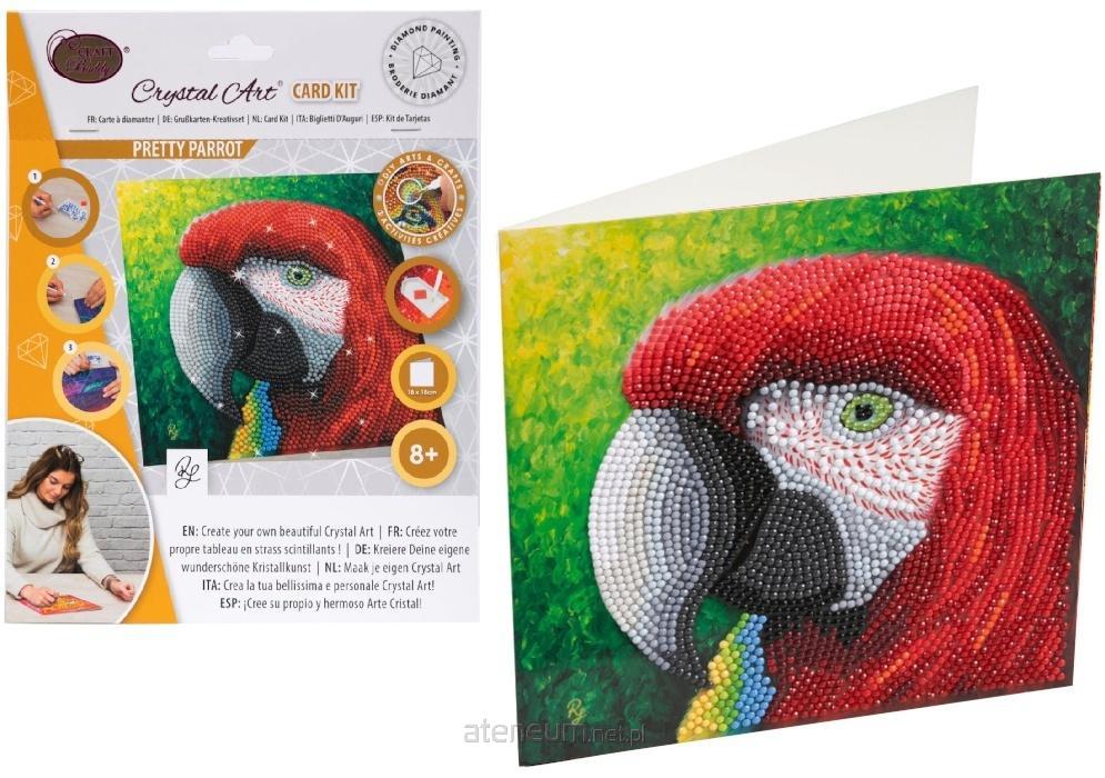 Zestaw Craft Buddy Crystal Art Papuga to feeria tropikalnych barw i błysku zamknięta w formie eleganckiej kartki. Projekt przedstawia majestatyczną papugę o intensywnie czerwonym upierzeniu i zielonym tle, które podkreśla głębię kolorów i połysk kryształków. Każdy detal od połyskującego dzioba po hipnotyzujące oko powstaje dzięki misternemu układaniu kolorowych diamencików, które tworzą efekt trójwymiarowej mozaiki.
