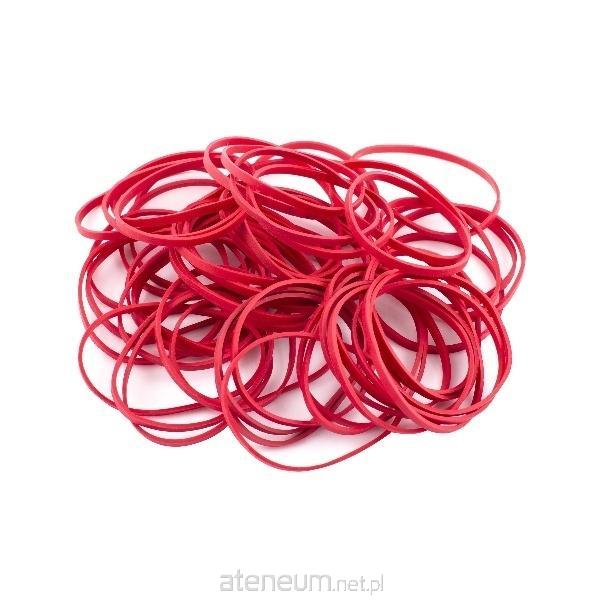 Elastyczne gumki recepturki w kolorze czerwonym. Wykonane z naturalnego kauczuku, który sprawia, że są mocne i wytrzymałe. Służą do tymczasowego łączenia luźnych przedmiotów. Wykorzystywane są np. do łaczenia kwiatów i warzyw, do spinania kabli, zamykania pudełek i korespondencji i do organizacji dokumentów. Pakowane w woreczki 1 kg. Przekrój: 1,5 x 3 mm, Połowa obwodu: 80 mm, Średnica: 50 mm, Kolor: czerwone