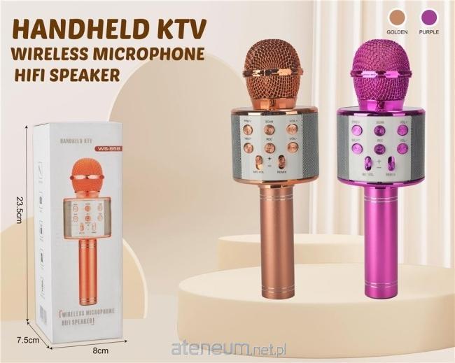 Przedstawiamy wszechstronny mikrofon bezprzewodowy KTV, który łączy funkcje mikrofonu, głośnika HiFi i urządzenia do karaoke w jednym. Ten model, widoczny na opakowaniu jako WS-858, gwarantuje doskonałą jakość dźwięku, idealną zarówno do śpiewania, jak i odtwarzania muzyki. Mikrofon posiada łatwy w obsłudze panel sterowania z przyciskami do regulacji głośności mikrofonu i muzyki (MIC VOL, VOL- VOL+), sterowania odtwarzaniem (PREV, NEXT, SCAN), nagrywania (REC) oraz efektu echa (REMIX). Dostępne są dwie atrakcyjne wersje kolorystyczne: elegancki złoty (miedziany) oraz żywy fioletowy (różowy), co pozwala dopasować go do własnego stylu. Wymiary opakowania to około 23,5 cm wysokości, 8 cm szerokości i 7,5 cm głębokości, co świadczy o jego kompaktowości i łatwości w przenoszeniu. To idealny gadżet na imprezy, spotkania rodzinne czy do domowego studia karaoke. Ciesz się muzyką i śpiewaj, gdziekolwiek zechcesz.