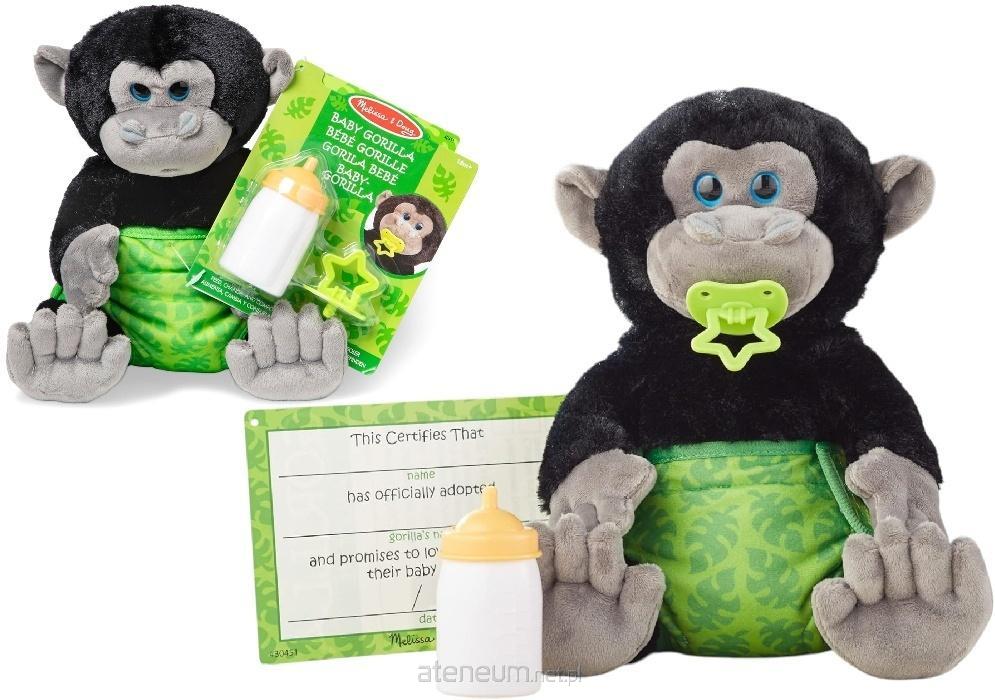 Maskotka Młody Goryl z certyfikatem adopcyjnym marki Melissa & Doug to uroczy pluszak, który rozwija empatię i opiekuńczość u najmłodszych. Miękka, przyjemna w dotyku zabawka posiada zdejmowaną pieluszkę, butelkę do karmienia oraz smoczek w kształcie gwiazdki, który idealnie pasuje do pyszczka gorylka. Dodatkowo zestaw zawiera imienny certyfikat adopcyjny, dzięki któremu dziecko może symbolicznie zaadoptować swojego nowego przyjaciela. To doskonały prezent edukacyjny, który łączy zabawę z nauką troski i odpowiedzialności.