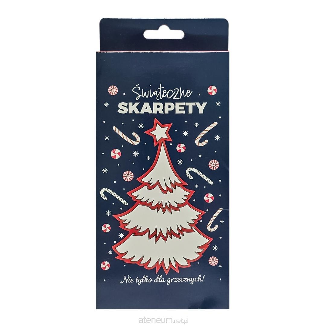 Skarpetki z motywem świątecznym w opakowaniu prezentowym.