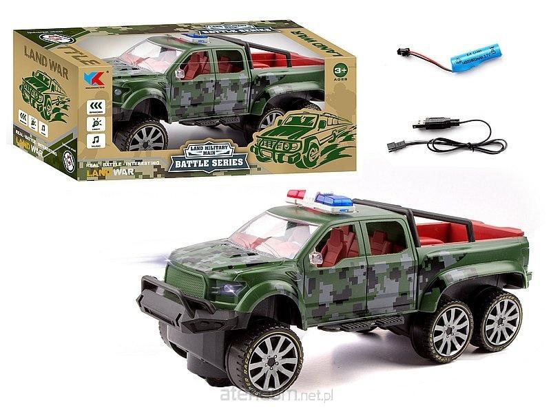 auto wojskowe 1:16 na baterie, 27x11x11cm, 6 kołowe, światła, kabel USB i akumulator; 28x11,5x11,5cm, W/B