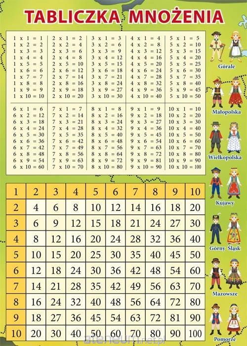 Niezbędnik ucznia - z jednej strony tabliczka mnożenia, z drugiej plan lekcji i mapa Polski. Poręczny format A5.