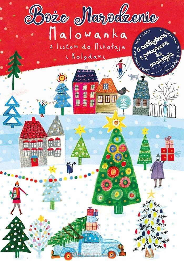 Z tą malowanką poczujesz magię świąt.Ilustracje z grubymi obrysami i dużymi elementami, sprawią, że kolorowanie sprawi niezwykłą frajdę. Oczekiwanie na święta urozmaicą najpiękniejsze polskie kolędy. Koniecznie napisz list do Mikołaja, kopertę wytnij i sklej samodzielnie. Pamiętaj o przygotowaniu pierniczków i kakao dla Mikołaja według przepisów z okładki, to może być kluczem do otrzymania wymarzonego prezentu.