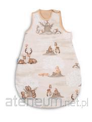 Śpiworek do spania w rozmiarze M będzie służył nieco starszym dzieciom (9-18 miesięcy) zapewniając im ciepło i bezpieczeństwo. Uszyty jest z miękkiej bawełny wypełnionej otuliną. Wnętrze i tył śpiworka są wykonane z bawełny muślinowej. Produkt nie zawiera twardych elementów, które mogłyby podrażnić skórę dziecka. Wyposażony jest w dwustronny zamek błyskawiczny, poprowadzony wokół śpiworka, pozwalający na zmianę pieluchy bez wyciągania dziecka ze śpiworka.