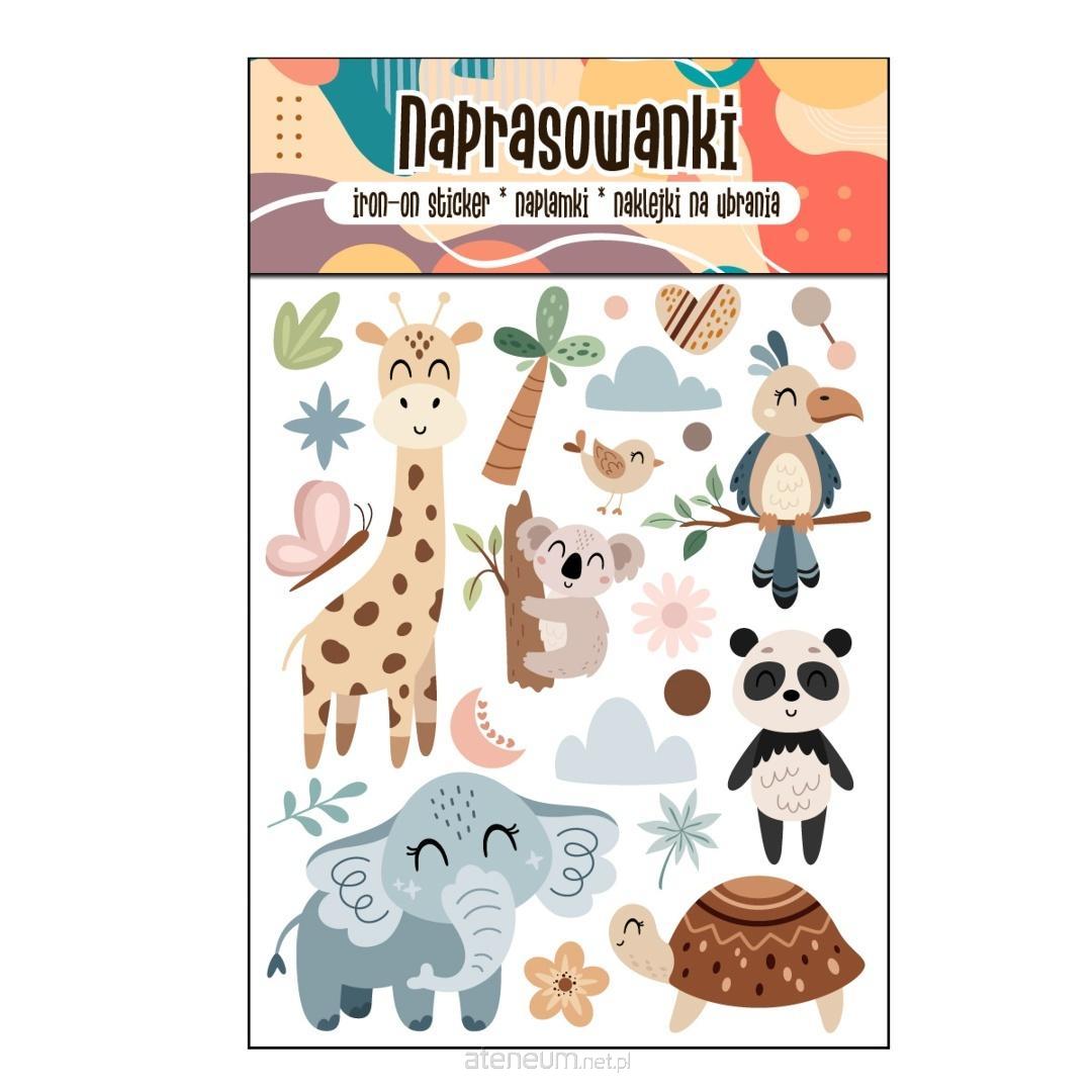 Zestaw grafik w postaci naprasowanek prezentujący zabawne Zwierzątka z Dżungli, czyli żyjące w Afryce, czy Australii.