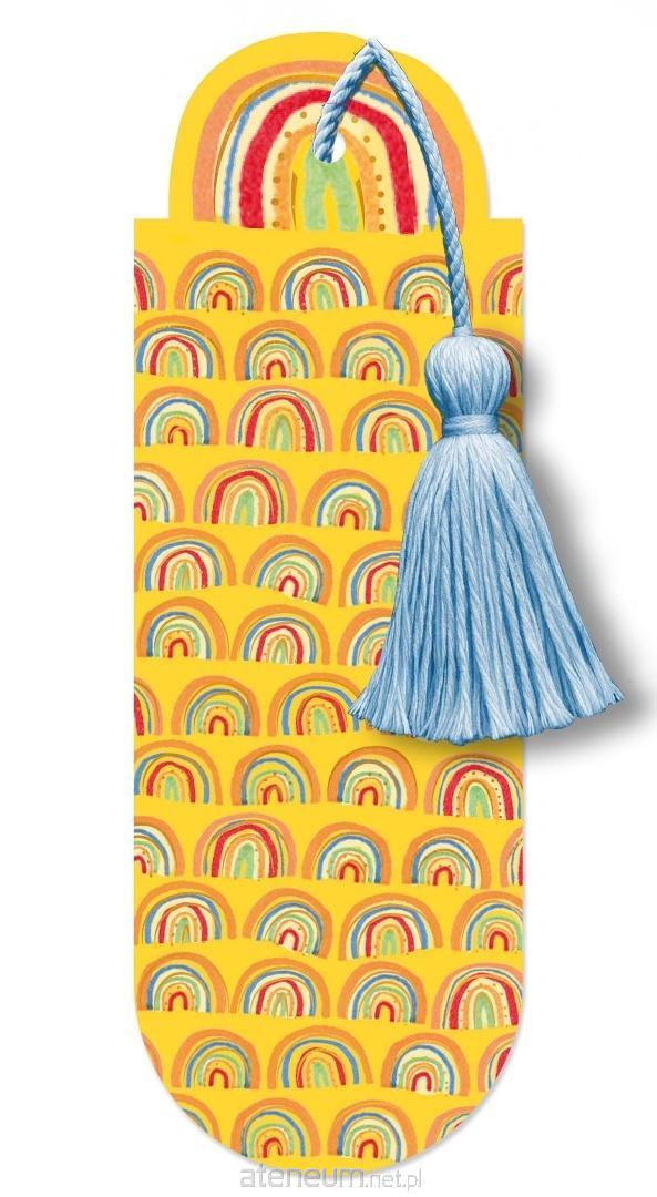 Złocona zakładka wykonana z grubego kartonu ozdobiona kolorowym chwostem.