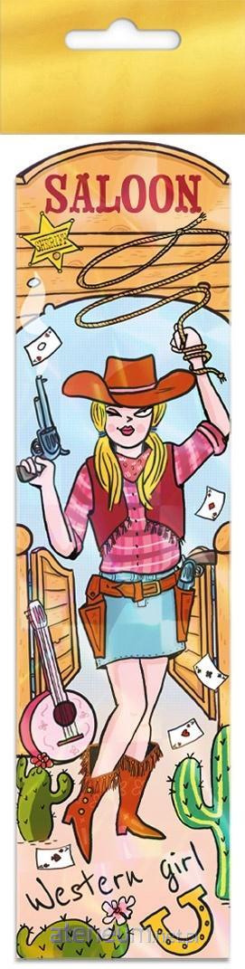 Zakładka do książki wykonana z grubego kartonu, ozdobiona lakierem soczewkowym.
