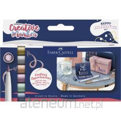 Pisaki kreatywne Goldfaber Creative Faber-Castell zestaw 3 szt. mix kolorów z pędzelkową końcówką piszącą B w opakowaniu blistrowym z eurozawieszką. To uniwersalne markery stworzone z myślą o nieograniczonej kreatywności i inspiracji. Odpowiednie do wszystkich powierzchni takich jak papier, szkło, tektura, metal, tworzywa sztuczne, folia, drewno, kamień i porcelana. Doskonale sprawdzają się na jasnych, kolorowych, jak i ciemnych powierzchniach. Wysokiej jakości tusz na bazie wody jest bezwonny i nie przesiąka się przez papier. Po wyschnięciu odporny na rozmazywanie i zachlapanie wodą. Dodatkowo po utrwaleniu w piekarniku 30 minut w temperaturze 160C staje się wodoodporny. Nie nadaje się do mycia w zmywarce. Pisaki nie wymagają wstrząsania ani pompowania, co zapewnia wygodne i bezproblemowe użytkowanie. Dostępne w 3 wariantach końcówek piszących - pędzelkowej, kaligraficznej oraz okrągłej o grubości 1,5 mm dla swobodnej ekspresji i eksperymentowania z różnymi stylami pisania i rysowania. To niezastąpione narzędzie zarówno do codziennych projektów, jak i bardziej wymagających, artystycznych realizacji.