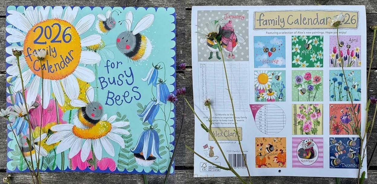 Kalendarz rodzinny, ścienny, notatnikowy Pszczółki Alex Clark na rok 2026 to urokliwy, artystyczny kalendarz ścienny, który łączy piękne ilustracje z funkcjonalnością niezbędną w codziennym życiu rodziny. Każda strona miesiąca jest ozdobiona obrazami autorstwa Alex Clark - pełnymi kwiatów, pięknych detali i przyjaznych pszczółek - które wprowadzają spokojny, przytulny klimat i motywują do planowania. Wymiar 31 31 cm daje dużą przestrzeń do zapisywania spotkań, urodzin, obowiązków i wspólnych celów na cały rok (w każdym miesiącu znajduje się 5 kolumn do robienia notatek). Kalendarz obejmuje cały 2026 rok i jest zaprojektowany tak, aby łatwo powiesić go na ścianie - dzięki temu może stać się centralnym punktem planowania w pokoju dziennym, domowym biurze lub kuchni. To doskonały wybór nie tylko dla miłośników sztuki czy pszczół, ale także dla rodzin, które chcą wspólnie planować i dzielić się obowiązkami - a przy tym cieszyć się pięknym dodatkiem do wnętrza.