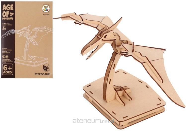 Zestaw składa się z 31 drewnianych elementów, które łączy się bez użycia kleju czy narzędzi. Każda część została precyzyjnie wycięta laserowo, co zapewnia doskonałe dopasowanie i trwałość konstrukcji. Gotowy pterozaur wyróżnia się efektownym rozpięciem skrzydeł i naturalnym wyglądem drewna, dzięki czemu stanowi nie tylko zabawkę, ale i dekoracyjny model edukacyjny.