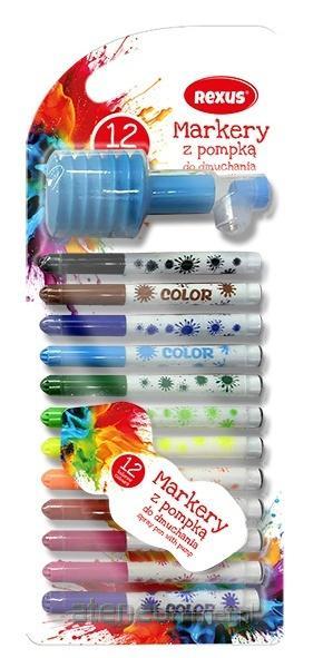 Zestaw zawiera 12 markerów, pompkę do dmuchania oraz szablony.