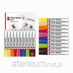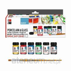 Zestaw 6x15 ml (żółty średni 021, czerwony karminowy 032, niebieski średni 052, zielony jasny 062, biały 070, czarny 073), x pędzel Marabu Universal płaski rozmiar 8