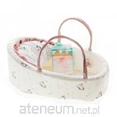 Wygodne w użytkowaniu piankowe nosidło dla lalki wyposażone jest w poduszeczkę i akcesoria: grzechotkę - kolorowe plastikowe kluczyki i pieluszkę. Zwraca uwagę modna kolorystyka i popularny nadruk w jednorożce, serduszka i tęcze. Wewnątrz nosidło jest w kolorze pudrowego różu. Akcesoria uatrakcyjniają zabawę w opiekę nad słodkim bobasem.