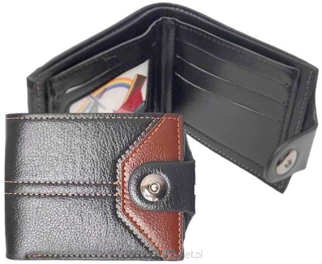Elegancki i praktyczny portfel męski wykonany z wysokiej jakości ekoskóry. Dwukolorowa kompozycja w odcieniach czerni i brązu, uzupełniona estetycznymi przeszyciami, nadaje mu wyrafinowany charakter. Wewnątrz portfel oferuje szereg przegródek, w tym dedykowane miejsca na karty kredytowe, dokumenty oraz pojemną kieszeń na banknoty. Całość zamykana jest na stylowy, metalowy zatrzask, który zapewnia bezpieczeństwo przechowywanych przedmiotów. To doskonały wybór dla każdego mężczyzny szukającego połączenia trwałości, funkcjonalności i modnego designu.