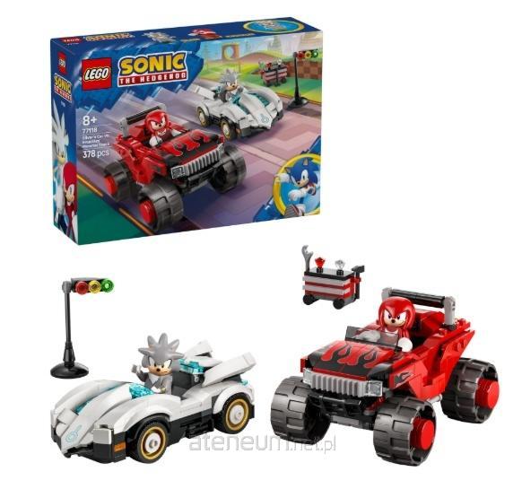 Dzięki zestawowi klocków dla dzieci LEGO Sonic the Hedgehog Silver w samochodzie kontra Knuckles w monster trucku (77118), inspirowanemu grą wideo, na młodych fanów Sonika czeka wielka przygoda. Ta zabawka dla chłopca i dziewczynki od 8 lat, inspirowana grą Sonic Racing: CrossWorlds, umożliwia dzieciom odgrywanie wyścigów z Knucklesem i minifigurką Silvera the Hedgehoga.