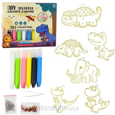 ZESTAW DIY KOLOROWE WITRAŻE BRELOKI 3D DINOZAURY Z 6 PISAKAMI ŻELOWYMI