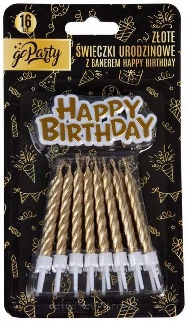 16 świeczek urodzinowych (0,55 X 6 cm) w kolorze złotym metalicznym