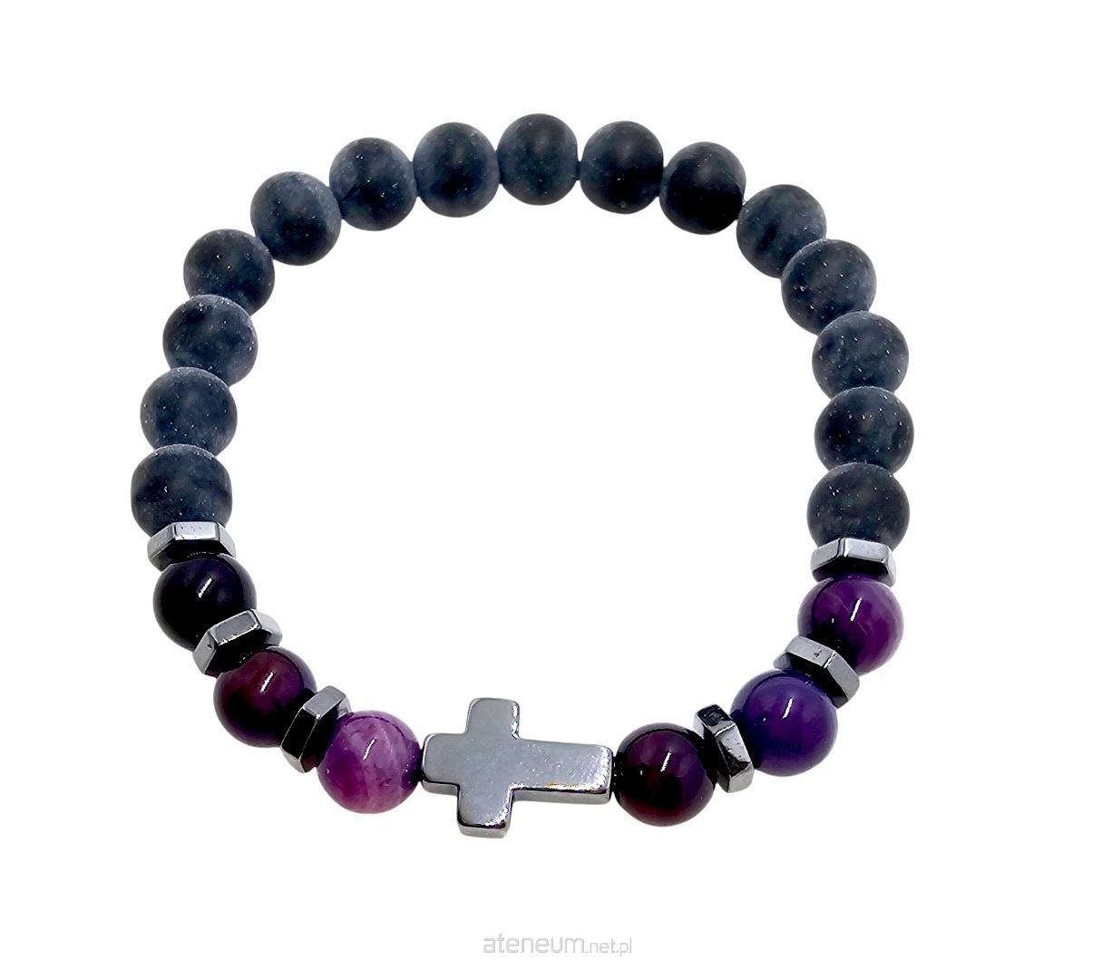 Odkryj unikalne połączenie natury i duchowości w naszej bransoletce. Wykonana z naturalnego, fioletowego kamienia i porowatej lawy, wzbogacona o hematytowy krzyżyk (10x19 mm). Dodatkową ozdobą są płaskie elementy z hematytu, które subtelnie rozdzielają fioletowe koraliki o wielkości 8 mm. Umieszczona na elastycznej gumce o obwodzie około 18 cm, zapewnia komfort noszenia. Ta stylowa bransoletka to nie tylko modny dodatek, ale także subtelny wyraz wiary i bliskości z naturą.