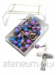 Centralnym punktem tej dziesiątki jest duży, ozdobny krzyż o wymiarach 34x23 mm. Krzyż jest dwustronny: z jednej strony znajduje się wyraźny wizerunek Św. Krzysztofa, patrona kierowców i podróżnych, a z drugiej strony - ciepłe przedstawienie Świętej Rodziny, symbolizujące opiekę, miłość i bezpieczeństwo. Takie połączenie symboli czyni różaniec niezwykle wartościowym duchowo przedmiotem.