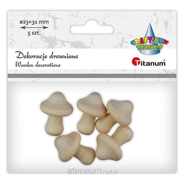 Drewniane grzybki, średnica kapelusza: 23 mm, wysokość: 31 mm. 5 sztuk.