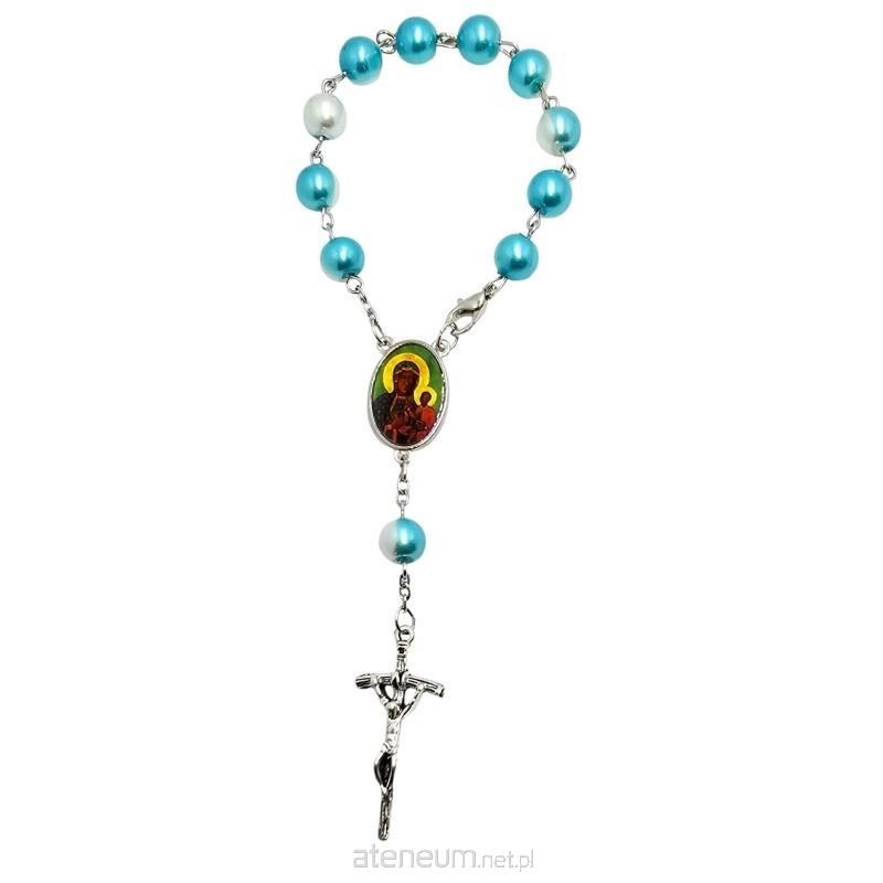 Wyjątkowa dziesiątka różańca wykonana z efektownych, dwukolorowych (biało-niebieskich) koralików o perłowym połysku i średnicy 8 mm. Łącznikiem różańca jest dwustronny medalik przedstawiający z jednej strony Matkę Boską Częstochowską, ukochaną Patronkę Polski, a z drugiej Świętego Krzysztofa, patrona podróżujących. Ta elegancka dziesiątka zwieńczona jest charakterystycznym krzyżem papieskim o wymiarach 32x16 mm. Dzięki praktycznemu zapięciu dziesiątkę można zawiesić w samochodzie. To stylowe i pełne duchowego znaczenia akcesorium, idealne do codziennej modlitwy i jako symbol wiary oraz opieki świętych patronów.