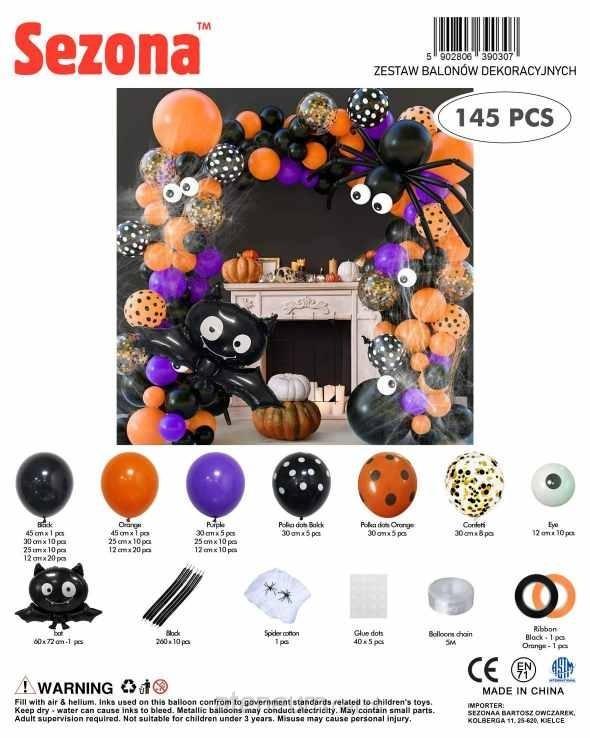 Zestaw balonów dekoracyjnych - Halloween z pająkami, 145 szt.